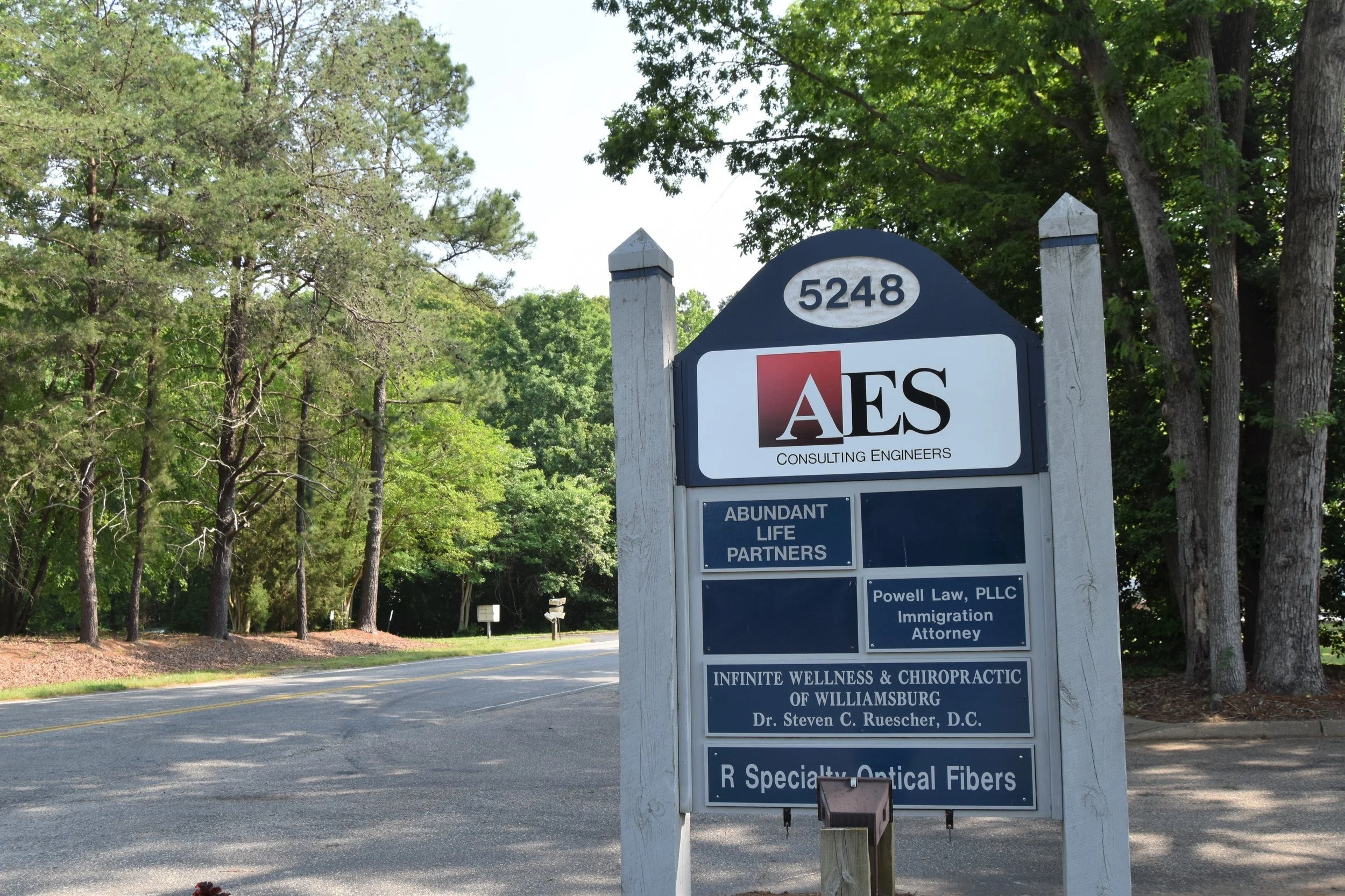 On Olde Towne Road, turn (right or left, depending on which direction you are coming from) at the blue sign that says AES at the top. There will be a UPS dropbox on the corner.