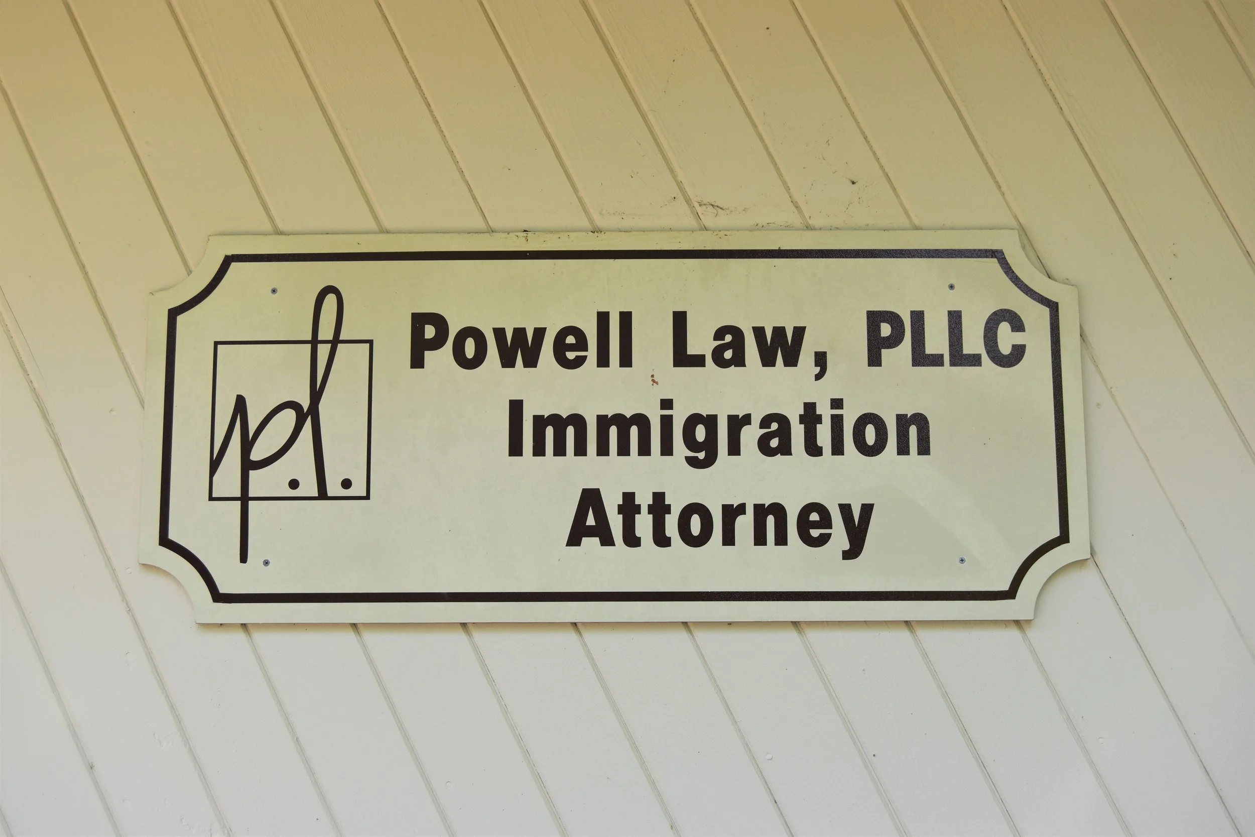 Our door is at the very end of the hallway labeled “Sharon Powell, Esq. Immigration Attorney.”